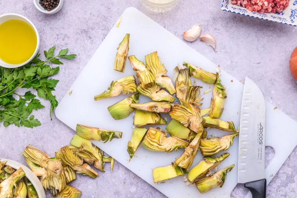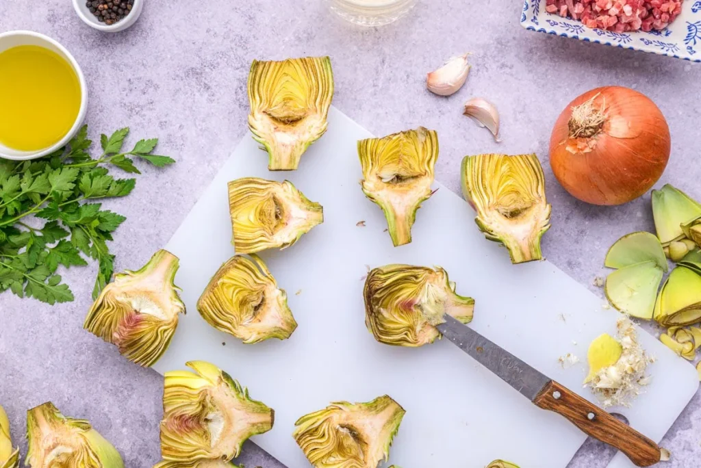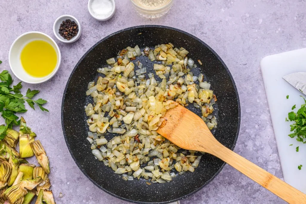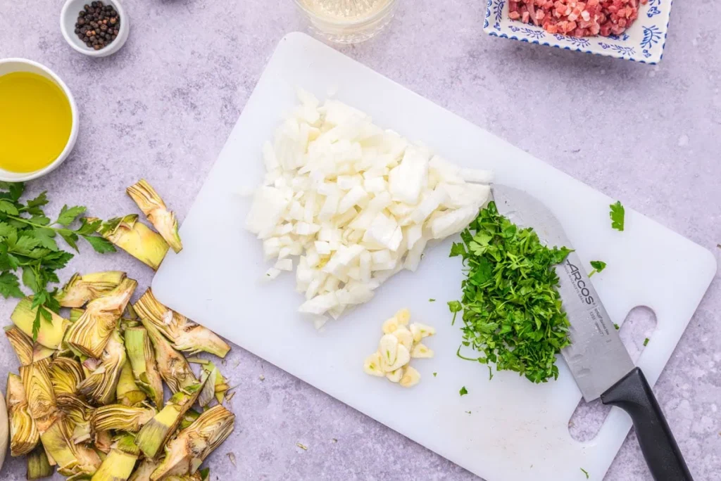 - Don’t clean the pan after removing the onion, garlic, and ham mixture. Sautéing the artichokes in the same pan creates a more intense flavor.